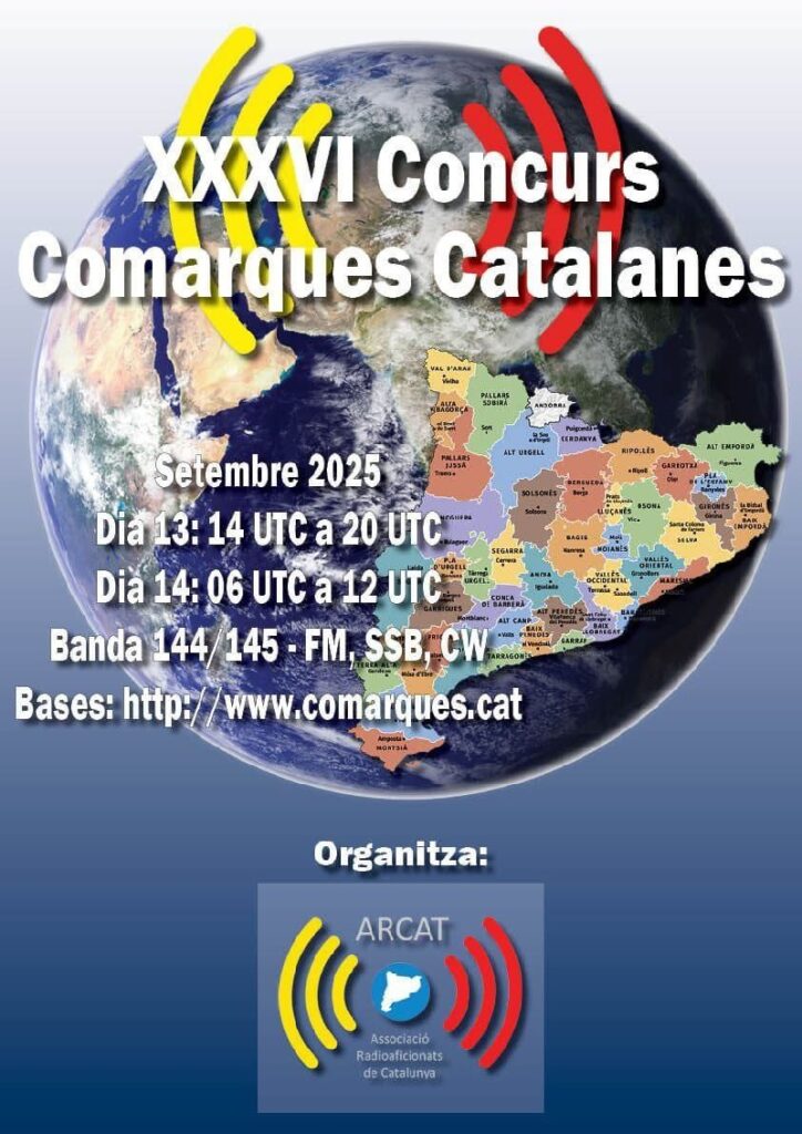 Amb l’objectiu de promoure l’activitat en VHF d’estacions portables, l’esperit competitiu, els coneixements tècnics i les comarques catalanes, ARCAT convoca la 36ena edició del Concurs Comarques Catalanes per al cap de setmana del 13 i 154 de setembre de 2025.